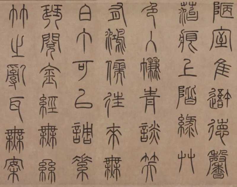 泰不华篆书作品欣赏《陋室铭》卷,纸本,纵36.9cm,横113.5cm。作者时年43岁,其书法兼善篆、隶、楷。篆法师宋徐铉,下笔多用方折,行笔圆活遒劲,结构疏朗工稳,末笔多作尖锋,即“悬针”笔法。此为迄今所见泰不华唯一的篆书真迹。作为一个少数民族文人,能写如此齐整秀逸的汉字古体,实属难能可贵,