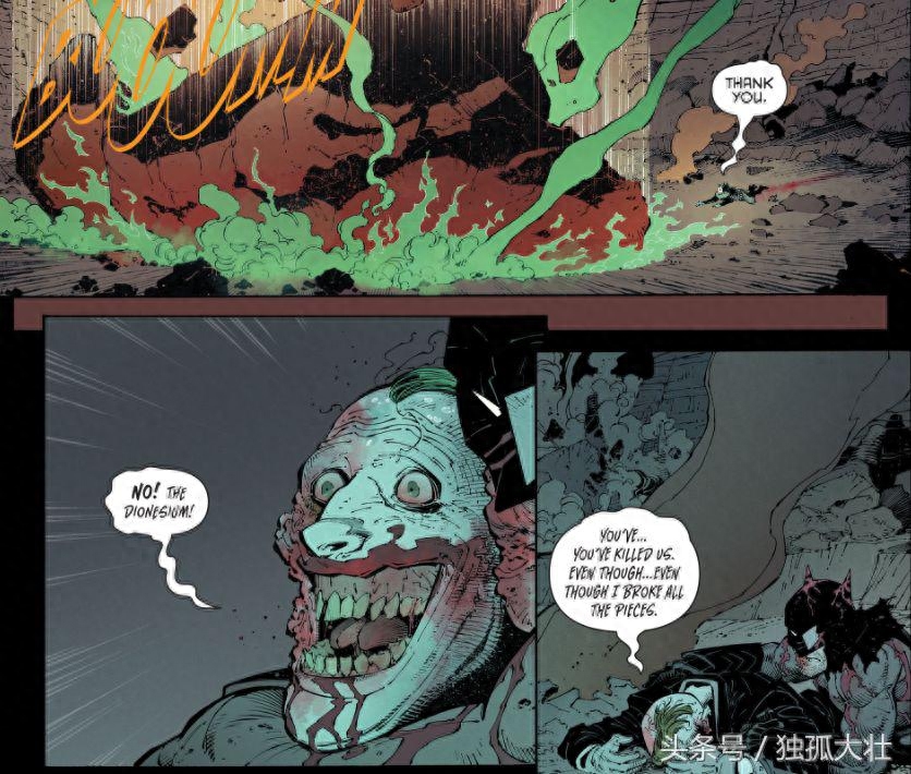 他的体内真的有酒神因子吗?蝙蝠侠认为答案是否定的,但是他和小丑并没有死去,
