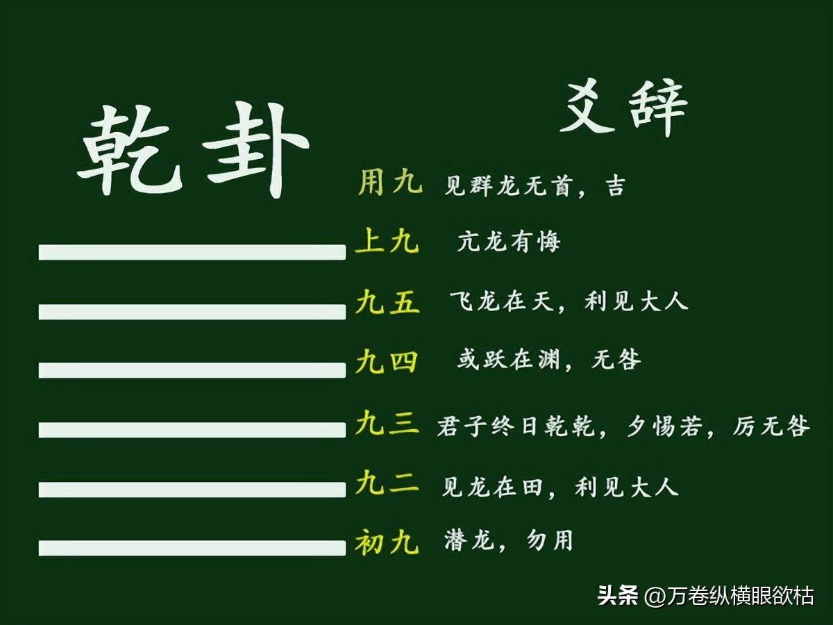 各种说法都有一定的道理,但我认为,这里不必强求“龙”的象征意义。“龙”只是这一卦的取象,因为它的刚健、善变符合六爻皆阳的《乾》卦,所以被拿来取作筮象,不一定非得要象征什么,“圣人”、“君子”之类的,这都是后人解读时硬加上去的。