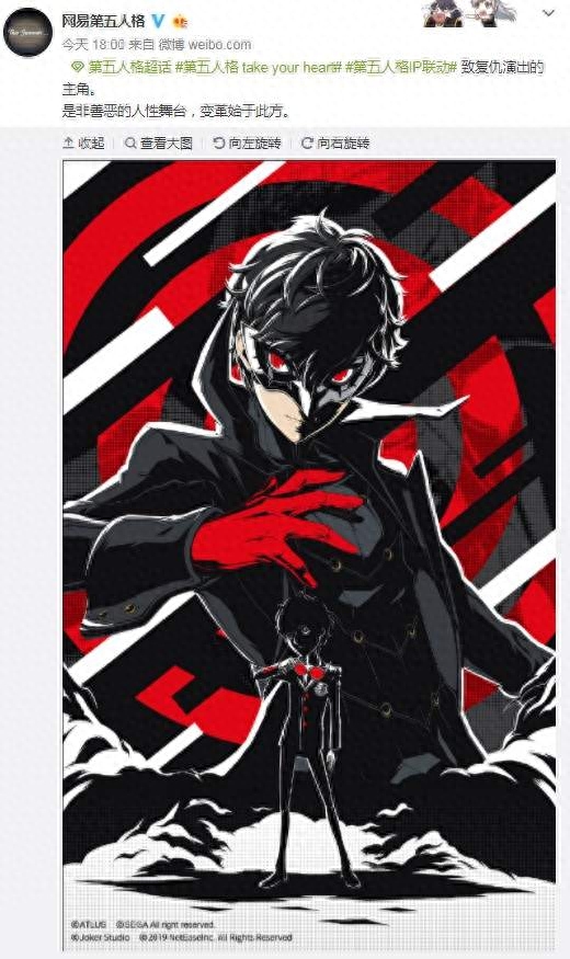 之前网易已经公布旗下《第五人格》将和Atlus的《女神异闻录5》展开联动,日前网易第五人格官方微博发布了《第五人格》与《女神异闻录5》的联动皮肤宣传图,一起来看看~