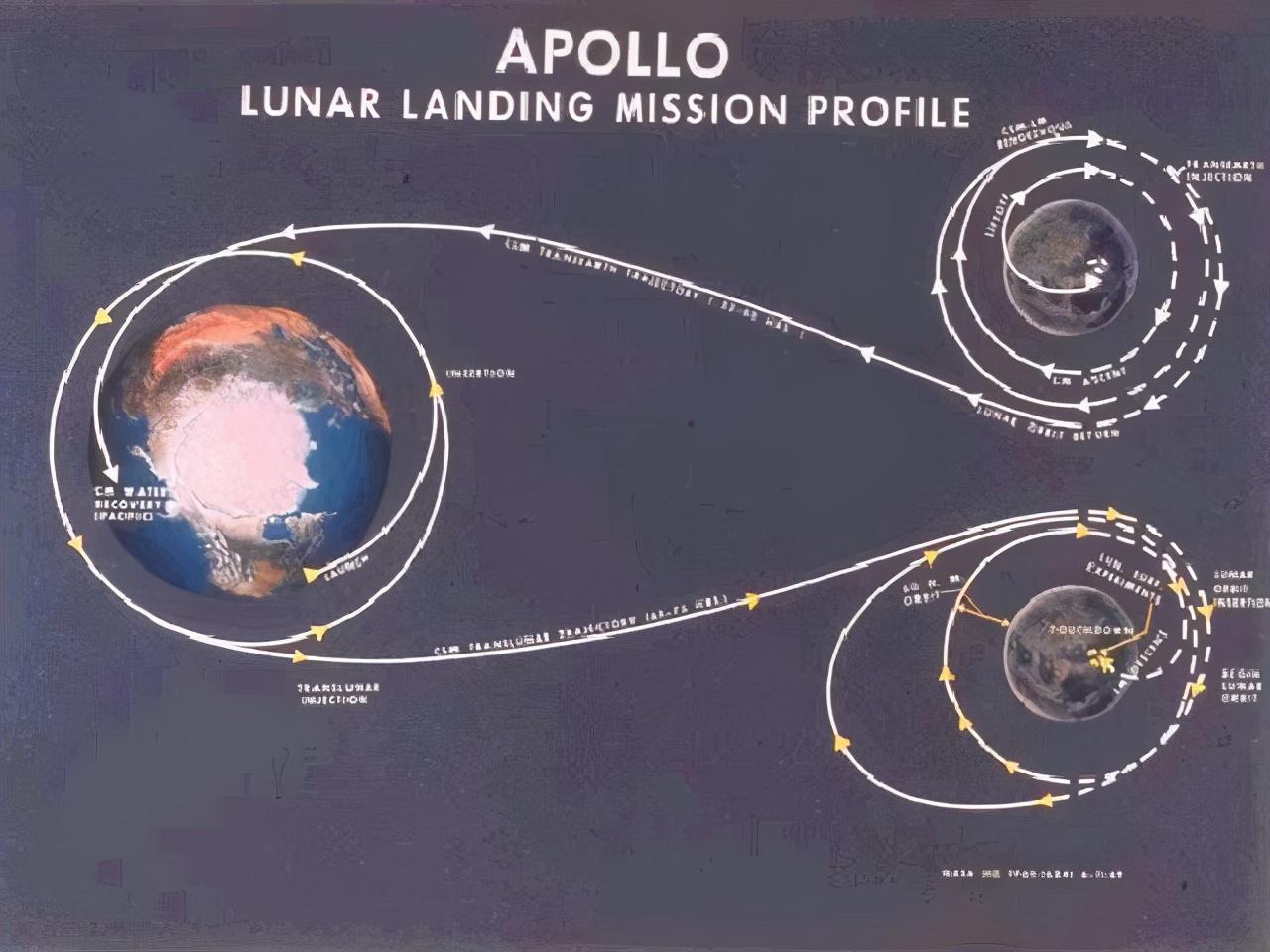 在多次实验后,美国宇航局最终采取了“月球轨道会合”来登月。登月计划是:从地球发射当时最大推力的火箭“土星五号”,将3名乘坐“阿波罗”太空船送到月球;然后“阿波罗”太空飞船绕月球轨道飞行,随即分离出一艘登月舱;登月舱会乘坐2名宇航员登月;最后当两名登月宇航员完成完成任务之后,会乘坐登月舱与“阿波罗”回合对接,最后回到地球。