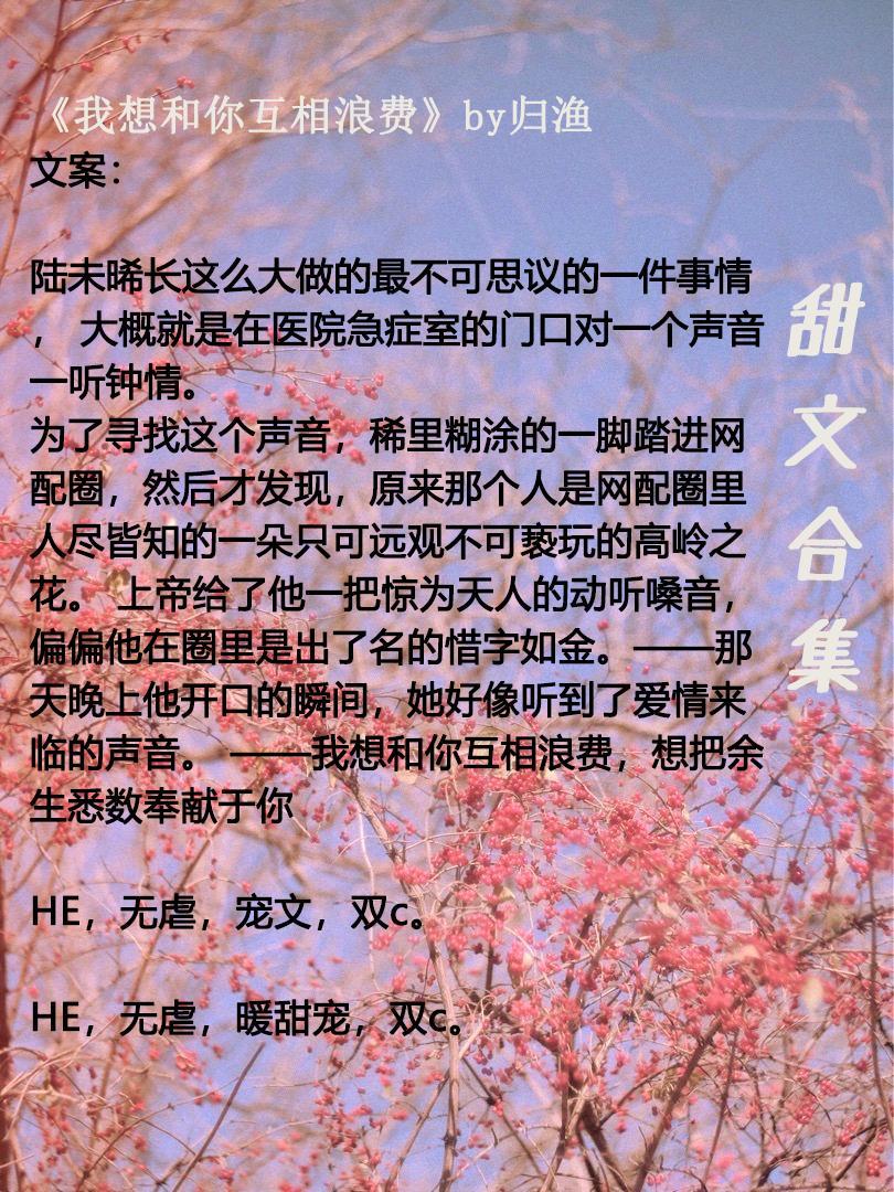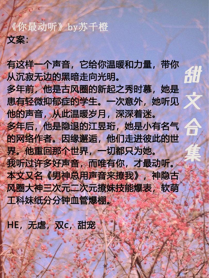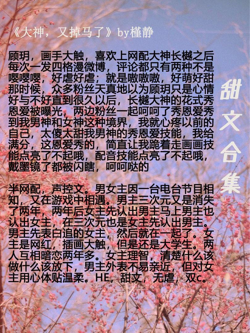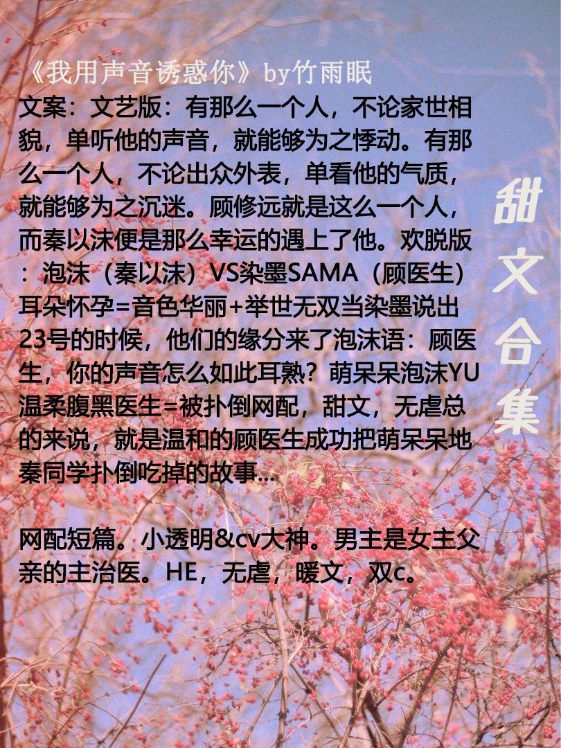 本次整理的是网配圈甜文,明天我会整理别的类型的甜文滴!