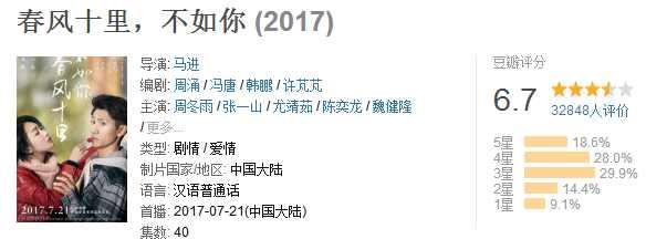 最近两个月出了不少的国产良心剧,不少观众也纷纷表示满意和满足。首先,张一山联手周冬雨《春风十里不如你》还算不错。
