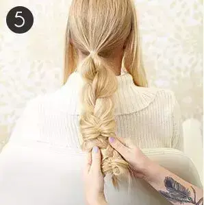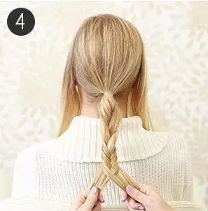 STEP4:马尾向下编织四股辫直到发尾。