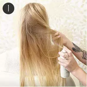 STEP1:在头发上喷上适量的发胶,如果是卷发的头发比较蓬松的妹纸这个步骤可以省略。