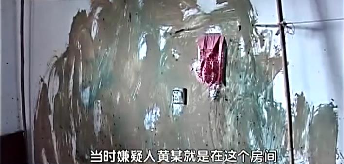 当时嫌疑人黄某在房间里对受害人唐某用工具进行疯狂砍杀,砍杀过后血迹沾到墙上,黄某为了掩盖她找来泥浆,对墙面进行粉刷。