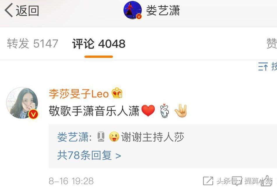娄艺潇发微博感谢众明星的祝福,李莎旻子也第一时间赶去评论。