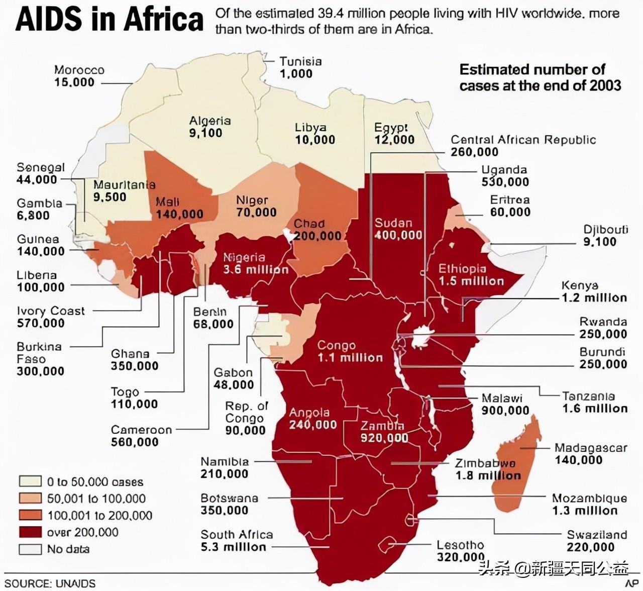 为什么非洲的感染人数会如此之高,主要为经由性传播。其中博茨瓦纳、马拉维、卢旺达和津巴布韦四个地区,性工作者超过五成是艾滋病患者,缺乏安全性知识,以及保护措施,间接与直接导致传染给正常人。此外男男不安全的性行为也在该地区占据6%,不安全的性行为就是导致感染扩大的主要原因。