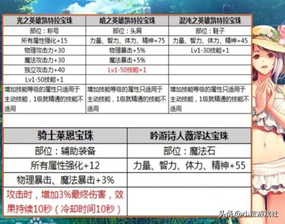 春节礼包宝珠属性,一、称号宝珠:和去年一样的双攻30独立40所有属强15,1-50技能+1;二、鞋子宝珠:对比去年的兽人宝珠,四维从30提升到45,其余没有任何改变;三、右槽宝珠:四维+55;四、护肩宝珠:四维和物魔暴击没有改变,技能1-30+1变为1-50技能+1(主动技能);五、左曹宝珠:除了所有属强+12和物魔暴击+3之外,新增了3%的最终伤害。