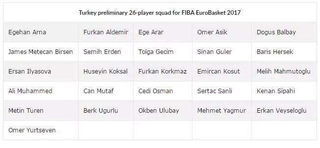 为备战欧洲杯,作为东道主之一的土耳其日前公布了一份由艾森-伊利亚索瓦和欧米尔-阿西克领衔的26人国家队大名单。