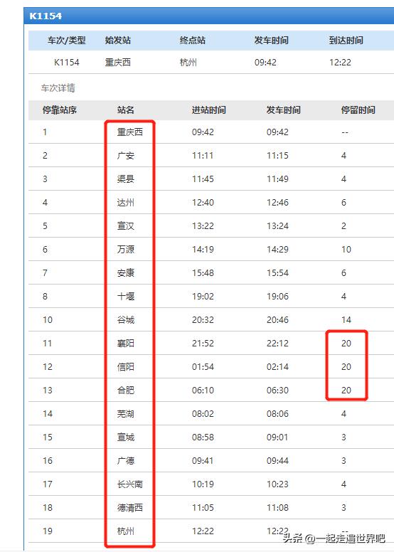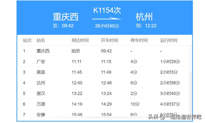 从图中,我们不难看出,这是一趟从重庆西站始发,终到杭州站的列车。