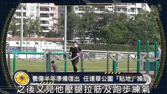 1月19日,也有有媒体拍到任达华在公园锻炼。同样身着类似运动装备,从热身到跑步,还有压腿拉伸,很是专业。