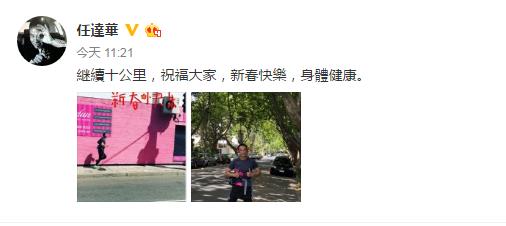 2018年2月18日,大年初三,他在社交媒体上晒出自己的跑步照片:"续十公里,祝福大家,新春快乐,身体健康"。
