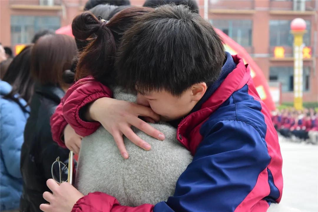 3位典型代表发言后,30多名家长与学生上台,家长为孩子赠家书和宪法读本,不少家长、学生激动落泪。