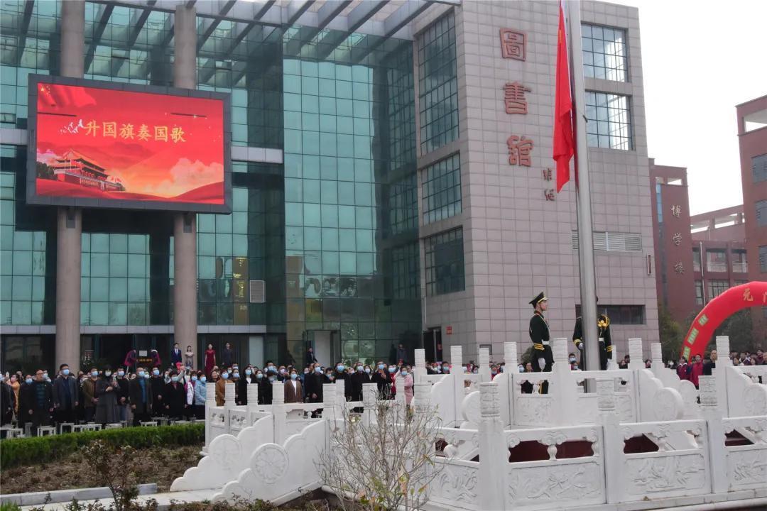 随后大会进行第二项,全体师生起立,升国旗奏国歌。