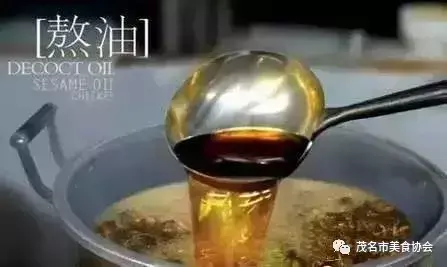 2、熬香油:化州香油是“熬”出来的香油在多数人所熟知的认为是“芝麻油”,或是通过“炸”“煎”出来的,而化州香油是“熬”出来的。首先需要上乘的“熟榨花生油”,再配合18种植物香料。其次,通过文火“熬”5小时以上。火候很讲究,武火即香浓,但容量上火且香味不持久。文火即香醇,香味持久回味,风味独特。