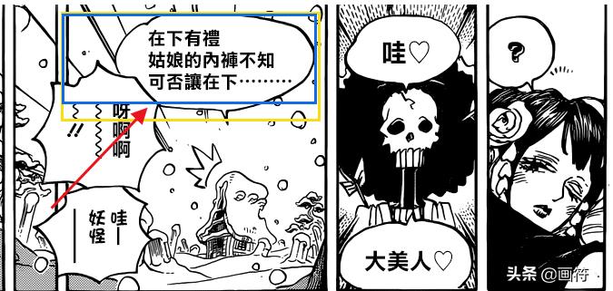 在上面一话,讲到到索隆受伤了,和小紫、小南子在一起,而在这一话,讲到布鲁克前往花之都找娜美她们,但是没找到,但是误打误撞找到了索隆所在的屋子,在进入房间后,看到索隆左拥右抱的这一幕,眼珠和舌头都弹出来了(其实我也很惊讶),当然了,之所以抱在一起睡,是因为小紫睡着睡着嫌冷,就抱着索隆睡着了(索大阳气重,行走的暖炉),这一幕让布鲁克羡慕不已,但是索隆这个直男却不高兴,认为小紫是睡舒服了,但是他却没睡好……而布鲁克见到美女后的打招呼方式依旧