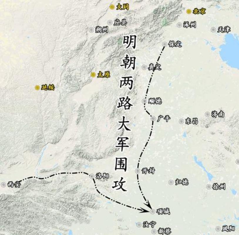 崇祯为此举行廷议,决定调陕西官军东进,河南官军西进,并从京城调兵南下,试图将义军聚歼在黄河北岸。