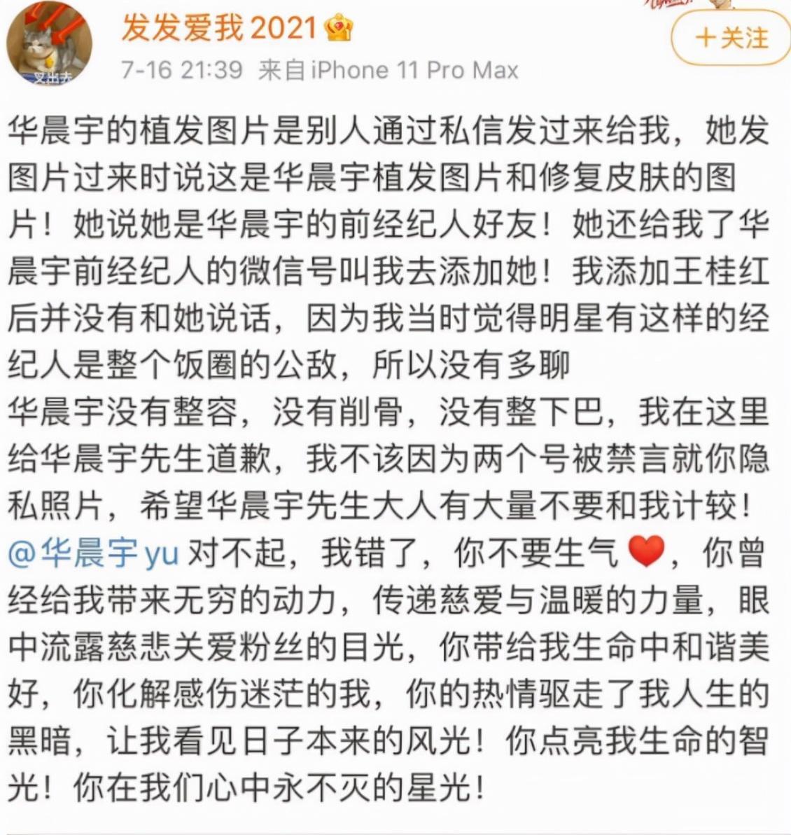 2021年,他先是与张碧晨被曝未婚生子,面临清纯人设的崩塌。紧接着网友“发发爱我2021”曝光了一系列图片指认他整容、植发、私生活混乱。