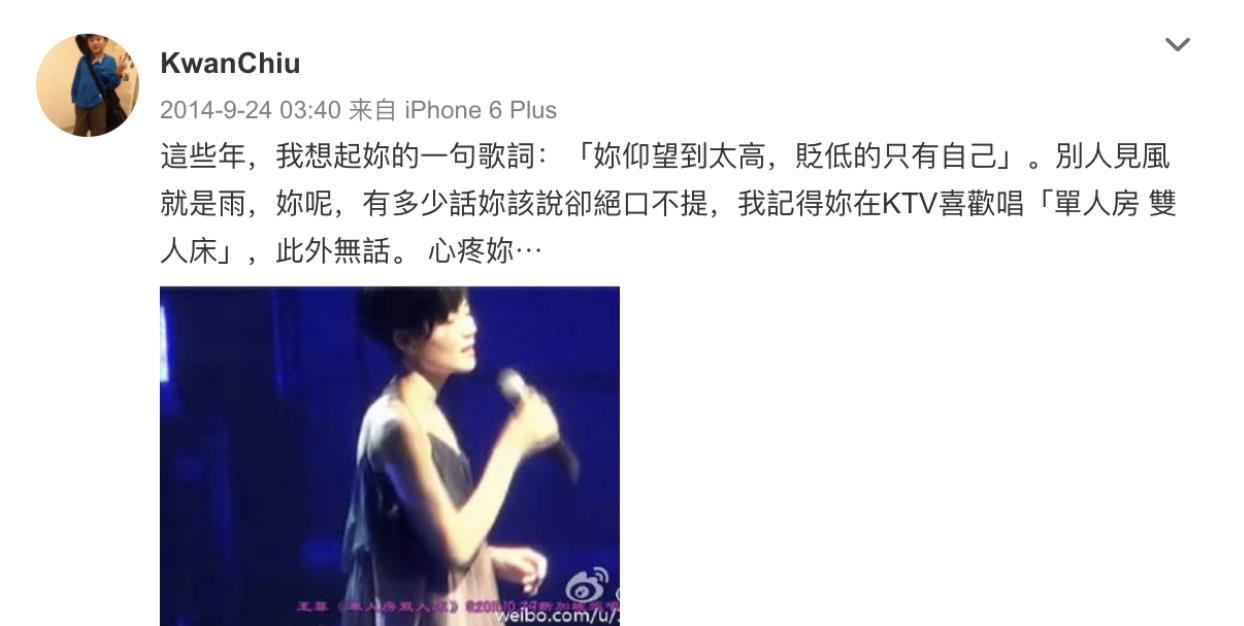也会在深夜用文绉绉的话语安慰受伤的王菲。