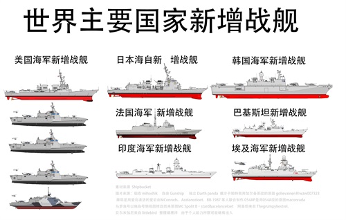 中国海军在2021年接收了两艘075、至少一艘094型战略核潜艇、3艘055型大型导弹驱逐舰、7艘052D型导弹驱逐舰、9艘056A型轻型护卫舰、3艘927型双体海洋水声监视船、6艘082II型猎扫雷舰。