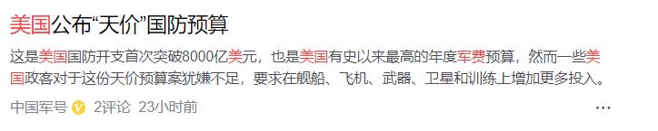 8133亿美元的军费给中国,一年一个美军不是什么问题