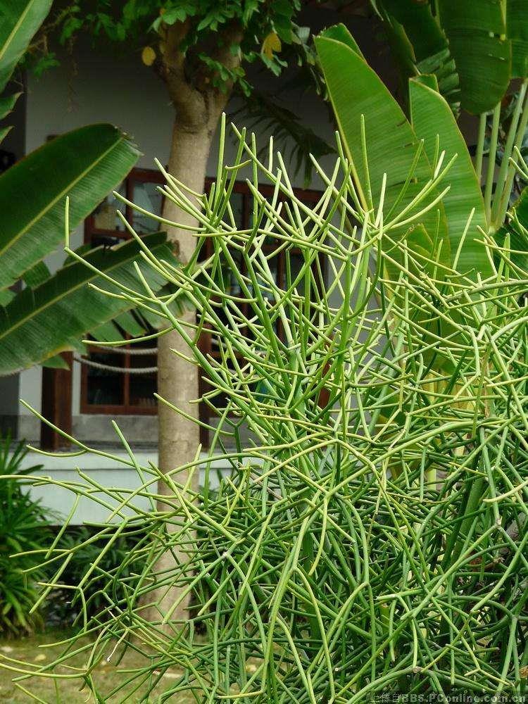 光棍树别名绿珊瑚,青珊瑚,是大戟科大戟属小乔木,高2~6米,直径10~25厘米,老时呈灰色或淡灰色,幼时绿色,上部平展或分枝;小枝肉质光棍树,具丰富乳汁。