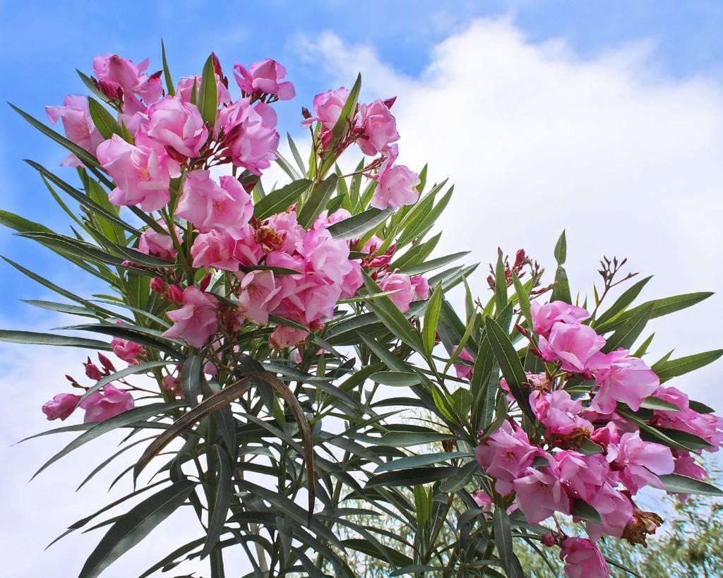 有毒植物,第一个肯定要说到夹竹桃,夹竹桃是夹竹桃科夹竹桃属常绿直立大灌木,高可达5米,花期几乎全年,夏秋为最盛;果期一般在冬春季,中国各省区有栽培,尤以中国南方为多,常在公园、风景区、道路旁或河旁、湖旁周围栽培;长江以北栽培者须在温室越冬。