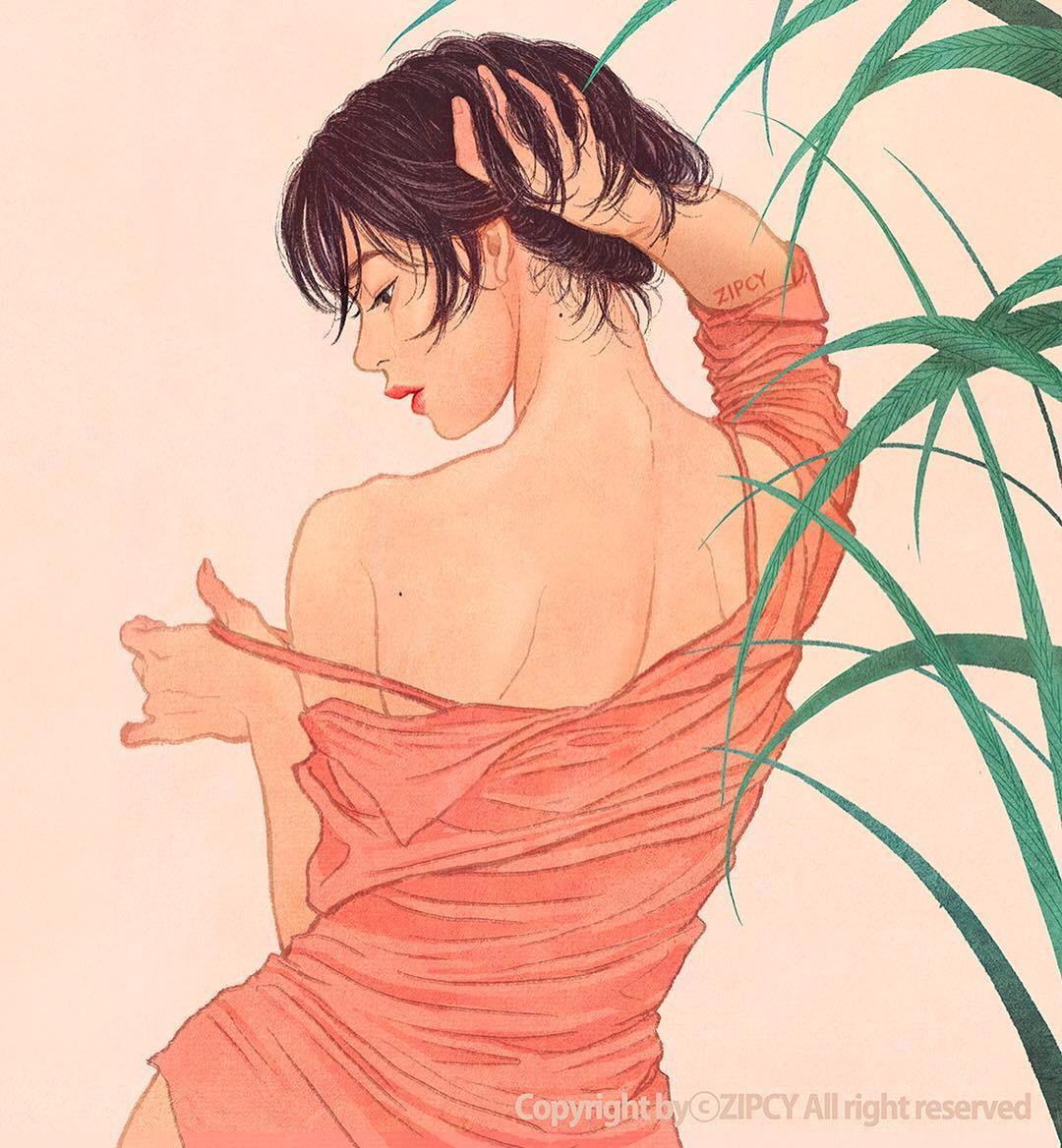 你的指尖触动我的发丝,令我心中痒痒的。韩国插画师Zipcy的插画,风格独树一帜,清新唯美浪漫又不失性感。
