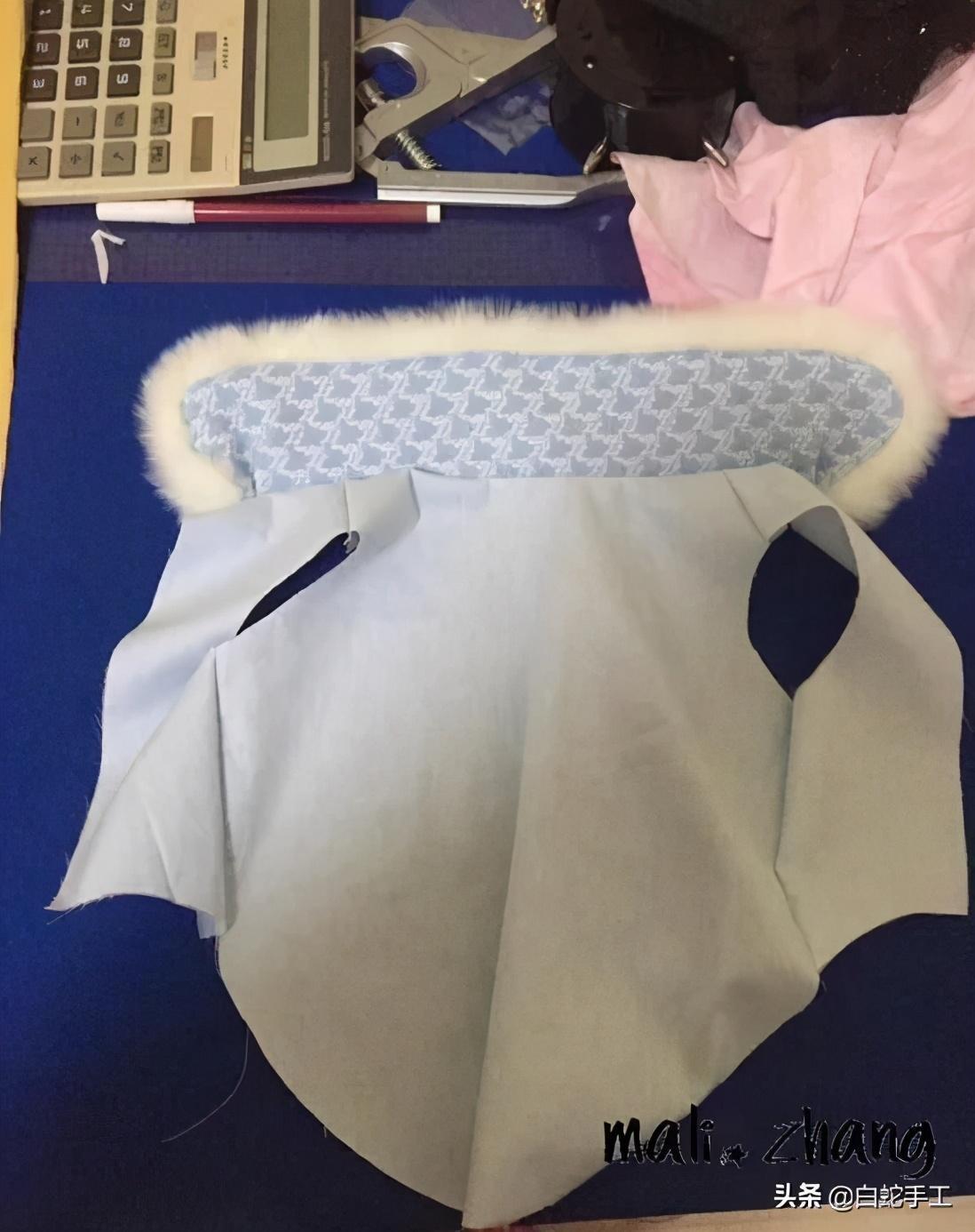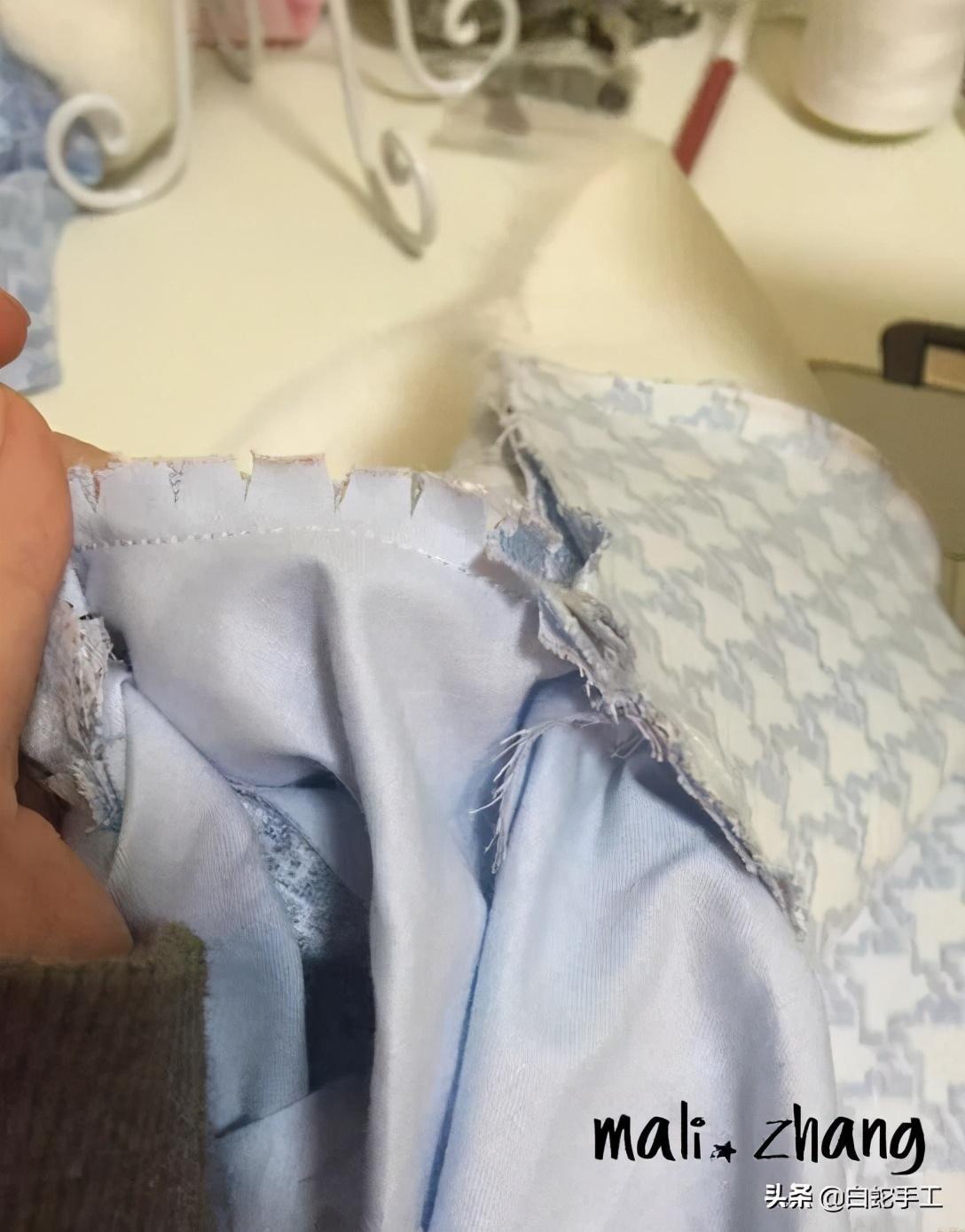 把里料和领子缝在一起,稍后比较方便缝合里料和面料