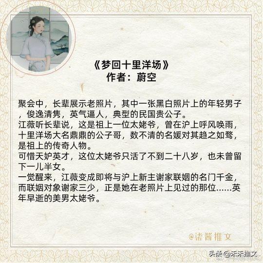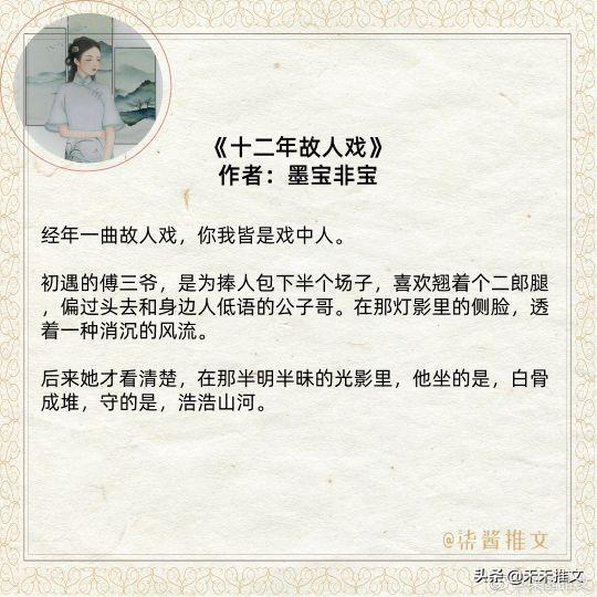 今天的这篇推文为小伙伴们分享12本超级好看,高质量超级经典的以民国为背景的好看的言情小说。