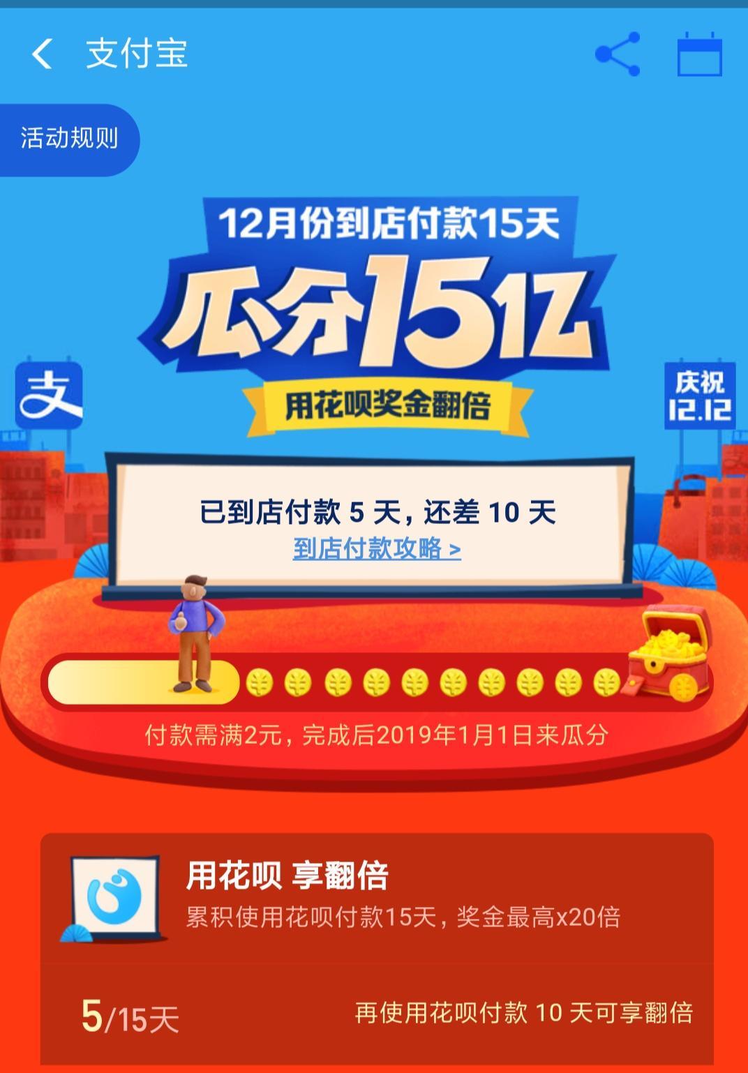 支付宝12月上线全新红包活动,用户瓜分15亿红包现在活动才开始了几天,我们还可以继续努力!