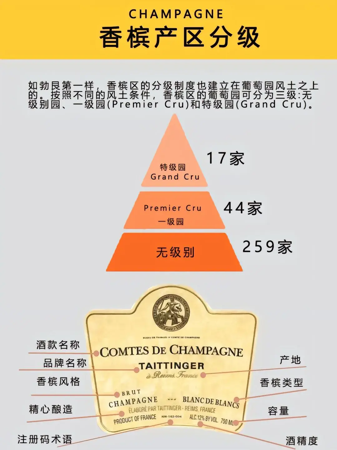 香槟分为无级别园、一级园和te级园。