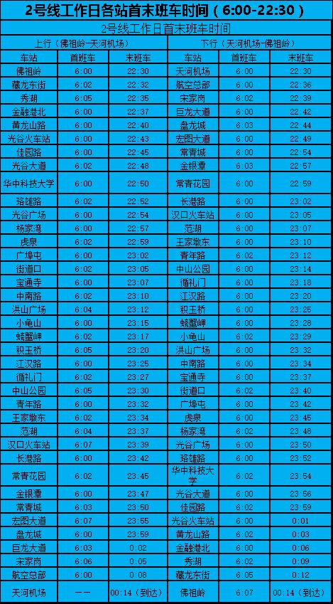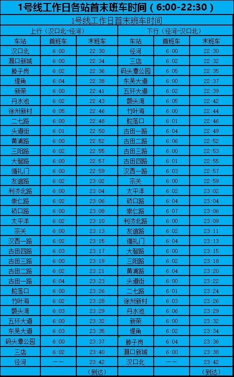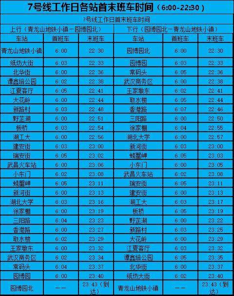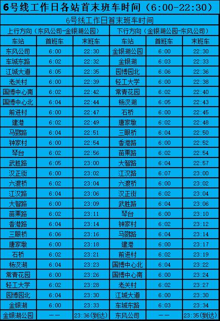 以上为武汉市在运营的地铁首末班时刻表,大家赶紧收藏吧,以后出行的时候心里也有个数哦。