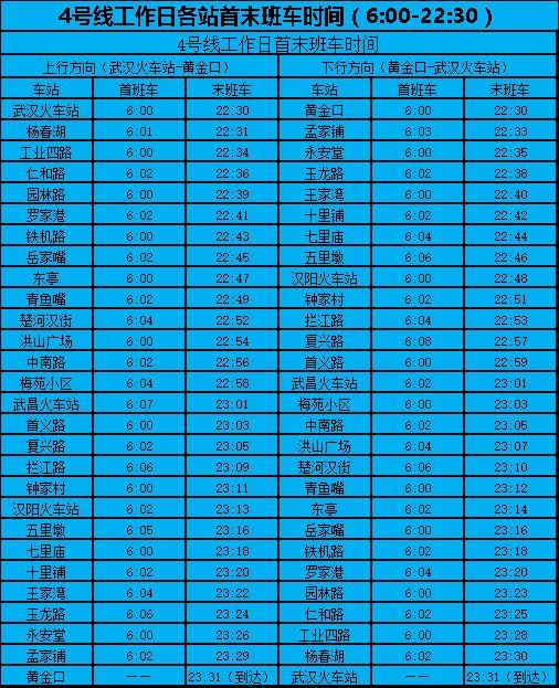 收藏!武汉地铁所有线路首末班车时刻表大汇总!
