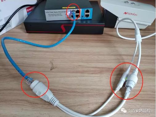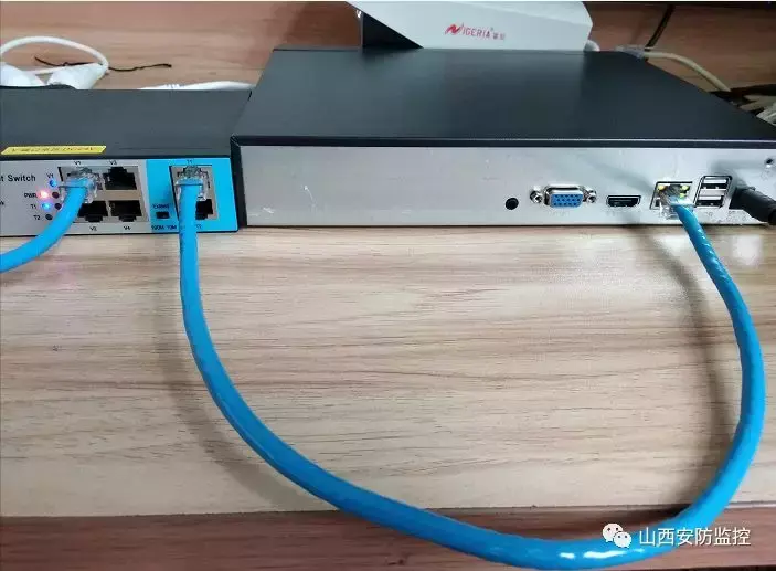 4.录像机连接POE交换机上行口。(不可连到供电口!!!)