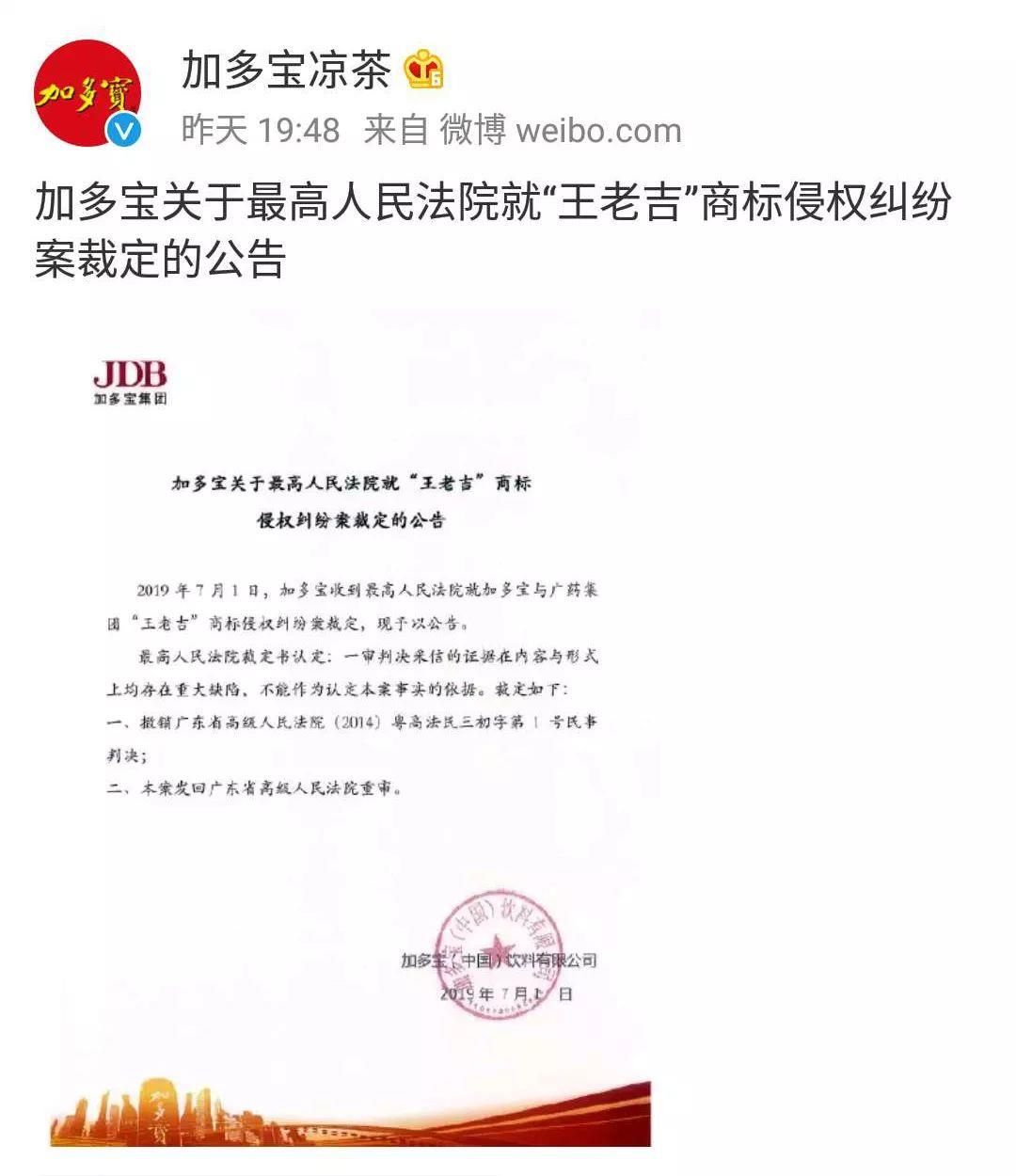 法院驳回加多宝诉求,要求加多宝赔偿广药经济损失