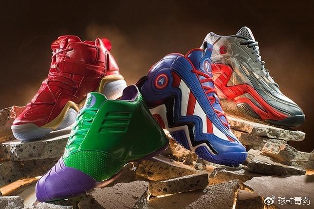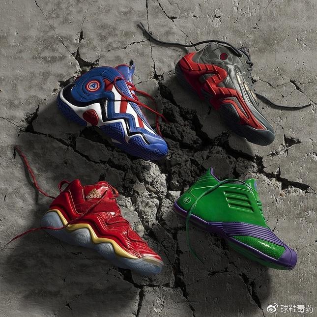 当时adidas basketball与Marvel's Avengers宣布合作的时候着实让人激动了一把,T-Mac 1、Top Ten 2000、Crazy 97 及 Real Deal 四款经典鞋型,加入超级英雄元素,钢铁侠的红色鞋面,搭配流线般的金色,充满强势气势;以美国国旗红蓝白元素,注入美队盾牌细节,在四双中刷足了存在感。