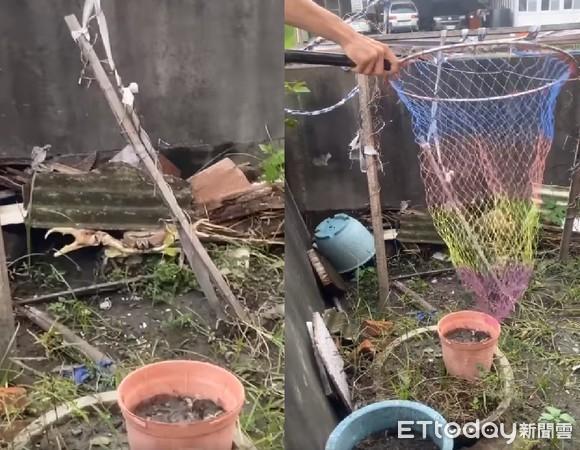 后院出现一只「比手掌还大」的陆蟹。(图/网友刘妺芸提供,请勿随意翻拍,以免侵权,下同)