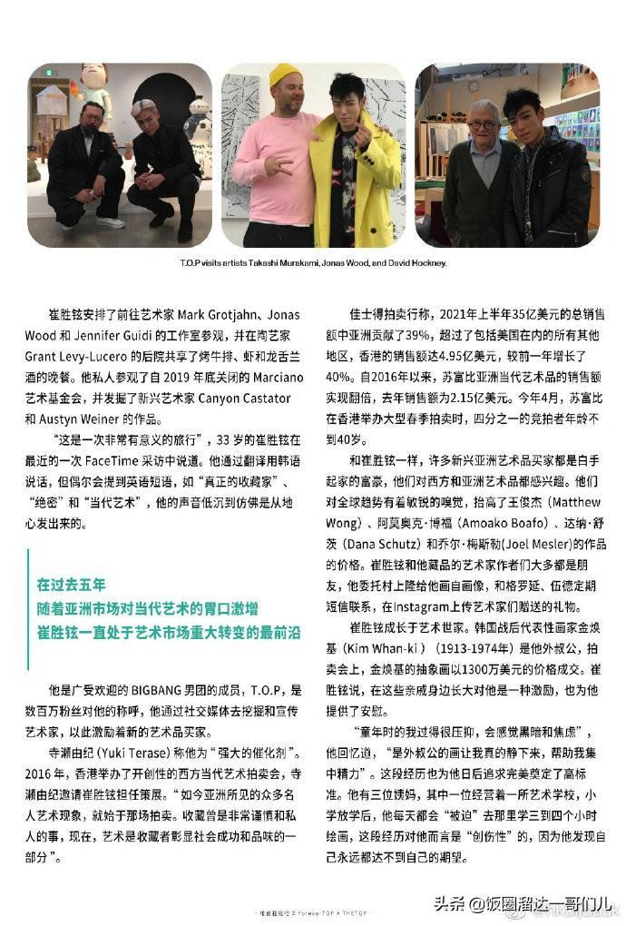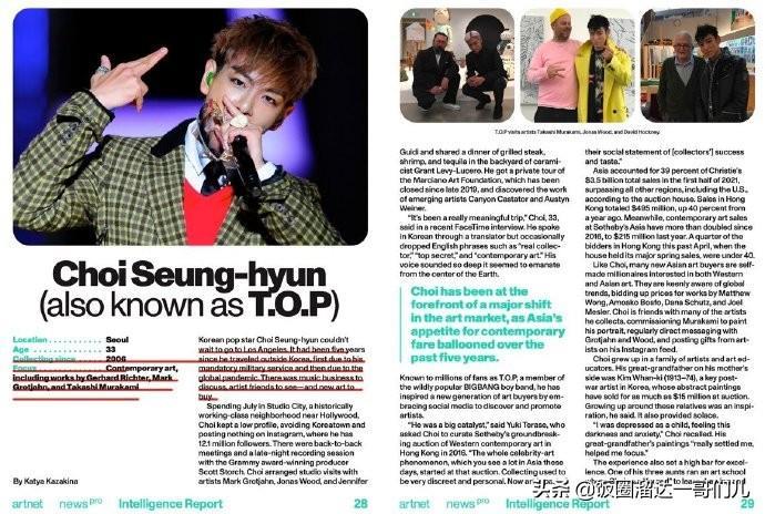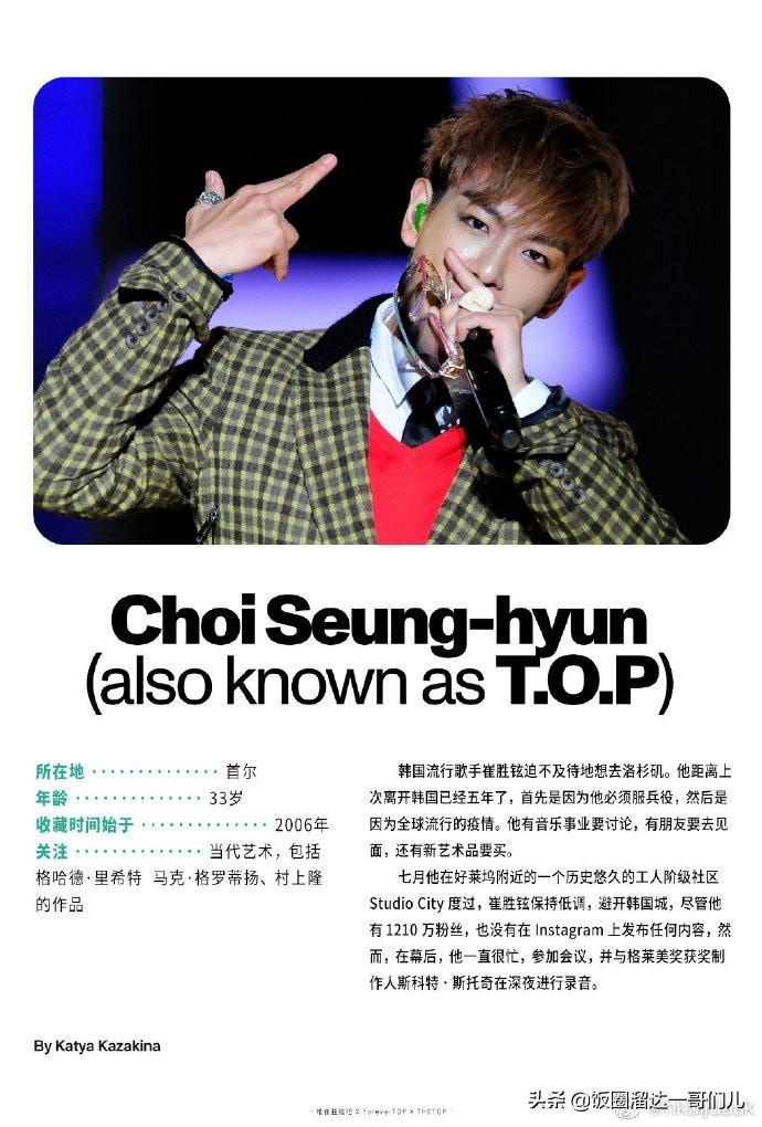 最近BIGBANG成员TOP崔胜铉以收藏家的身份接受Artnet媒体访问,是TOP退伍后的首次公开采访。