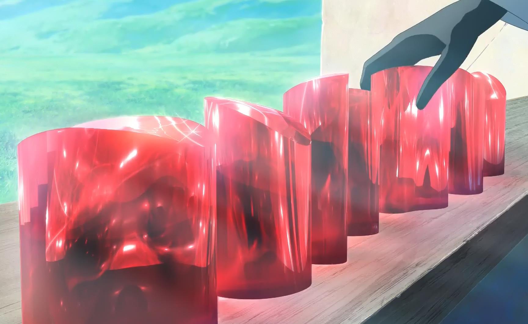 之后磷叶石又碰到了朱砂石,从朱砂石口中得知,大家都知道金刚老师和月人有着某种关系,只是大家都默认了这个事实,说回来其实《宝石之国》的故事就是从没有判明金刚老师,甚至没有判明所有宝石人的真身的情况下开始的,这种情况的展开,和一开始就交待清所有主要人物的叙述方法的效果截然不同,让故事本身保持神秘感。而朱砂口中的“大家都知道”,反过来说就是只有磷叶石不知道,只是因为磷叶石最年轻?又或者忘记了?