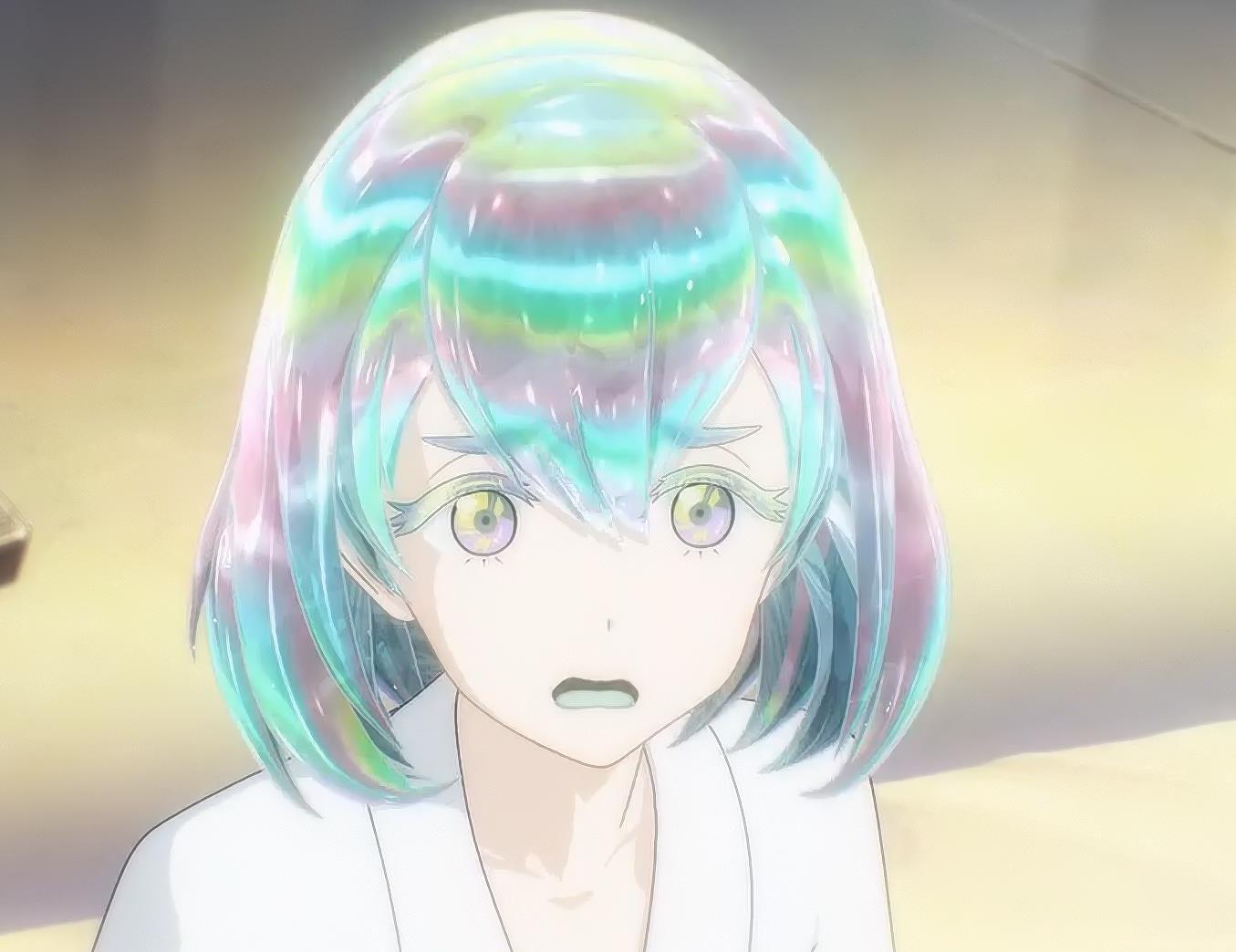 见到月人后的变石仿佛变了一个人似的,战斗力超群并且发色又绿变红,CV为钉宫理惠,我还当夏娜附体!