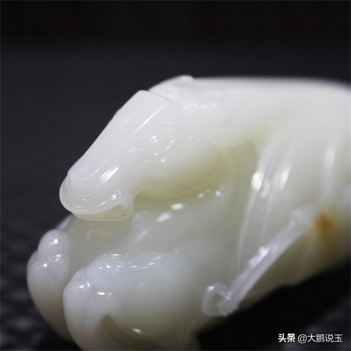 最后我们说一说顶级收藏级别的羊脂玉。到达这个级别的羊脂玉非常稀少,克价在两万-三万。其肉质晶莹剔透(在自然光下可微微泛青色或者暖色),状如凝脂,就似羊尾巴油一样,温润、熟糯,近于无瑕。若是籽料表皮或许带有皮色,这一类更加稀少珍贵,可遇而不可求。