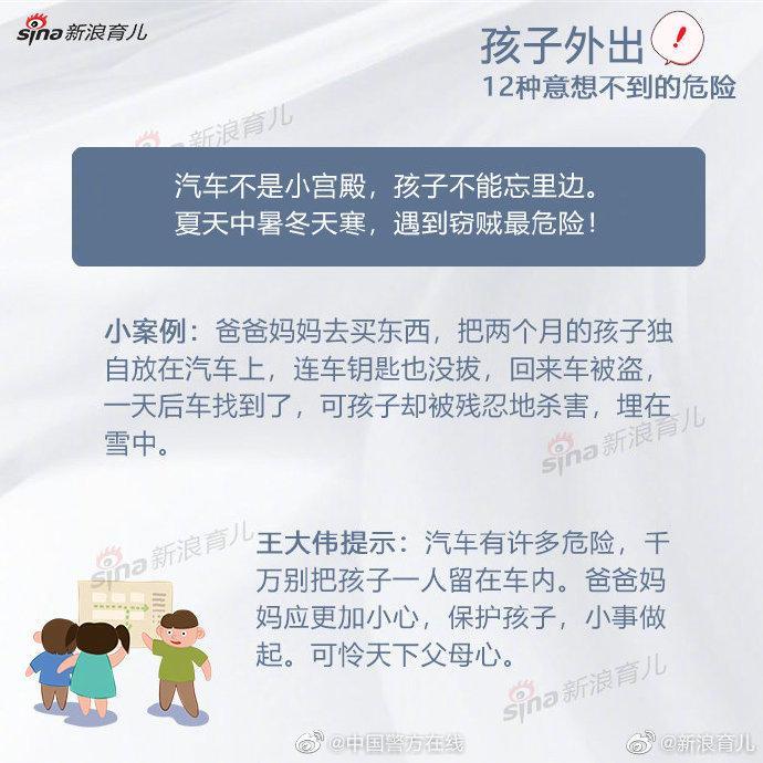 【孩子外出可能遇到的12种意想不到的危险】警民携手庆团圆中秋遇上国庆,带孩子外出,安全非常重要。千万不要疏忽大意,否则追悔莫及。一起来看孩子外出可能遇到的12种意想不到的危险扩散!