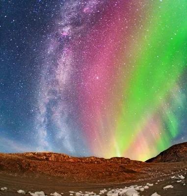 而南半球,在高纬度的南美洲、澳大利亚、新西兰和南极洲都可以看见南极光。
