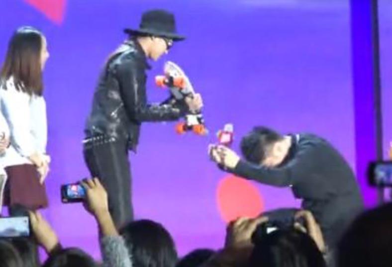 李艺彤对着郭德纲放狠话,说“你不要不识抬举”,前一秒还这么霸气,下一秒却表示“如果你不识我只好跪下来求你”,示弱的同时还真的跪了,非常结实的一下,周围还有人感叹“哇”。