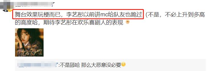 不过李艺彤在粉丝眼中就是日系热血少女,很燃很中二,所以干什么都很好解释,这次下跪的事情粉丝也说只是玩梗,以前经常跪。