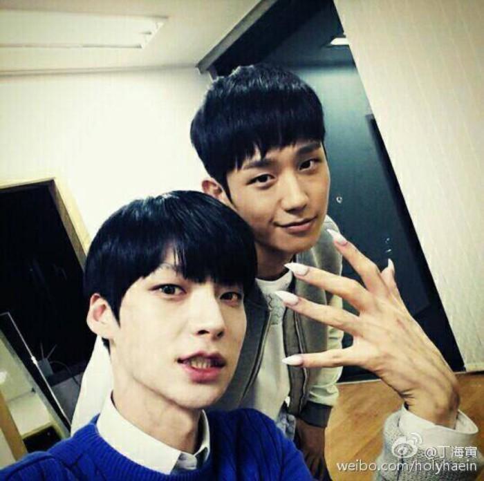 还有在《请回答1988》里演成德善的国中同学浩英。其实,丁海寅第一次露面是在2013年,出演了AOA Black的《MOYA》MV,舞池里那位暖男就是他哦!