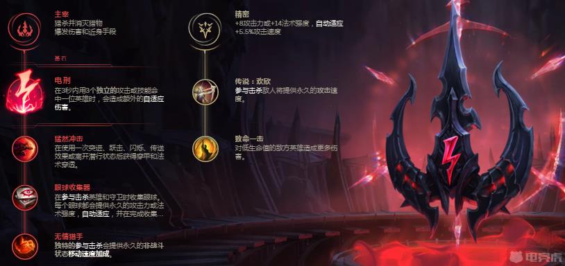 副系符文选择精密的欢欣与致命一击,欢欣可以为盖伦提供攻速加成,致命一击则是对残血的敌人造成更多的伤害,增加盖伦的收割能力。
