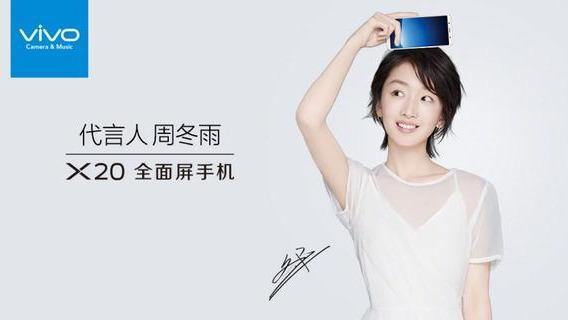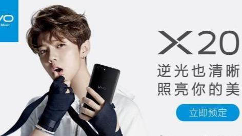 vivo X20系列,于2017年9月发布,代言人中国明星-鹿晗、周冬雨、彭于晏,签约中国顶级流量明星鹿晗,签约好几年,当时很多门店的鹿晗人形立牌都被小女孩偷去不少,并首次采用多明星代言。广告词:“逆光也清晰,照亮你的美”